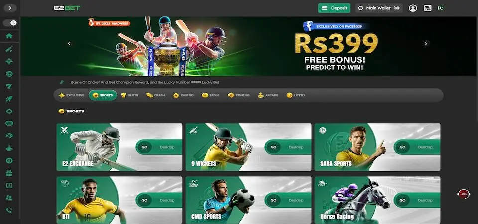 From classical slot games to modern card games, E2 Bet game is offering a huge variety of games with updated versions of games and game features. You just need to select games according to your mood and will, play and win big.